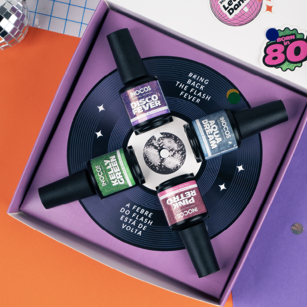 Disponível em 4 cores deslumbrantes, a coleção Flash Back 80’s traz o melhor do glitter, evocando toda a energia contagiante dos anos 80.