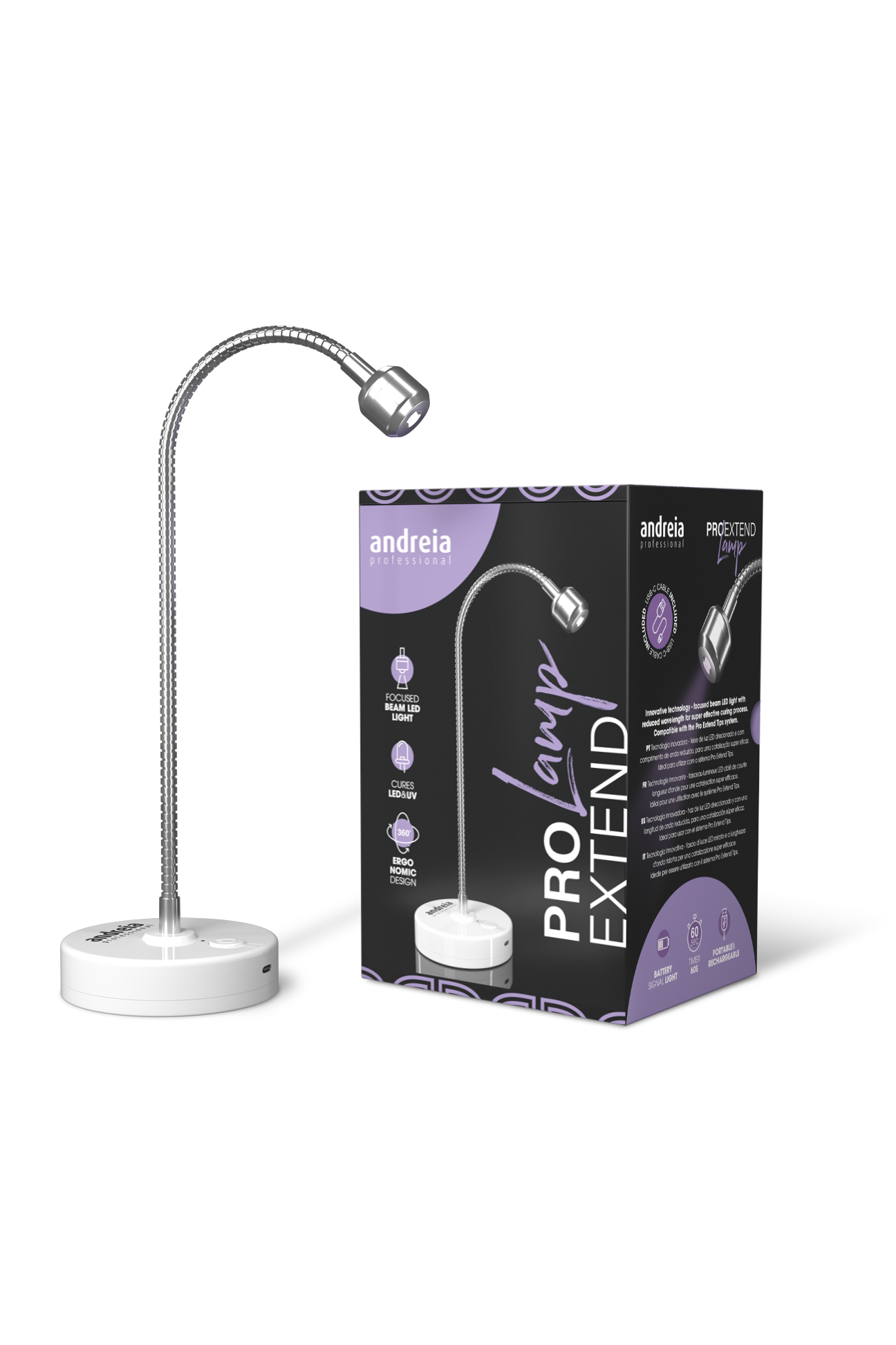 PRO EXTEND LAMP é uma Lâmpada LED de uso profissional, concebida para catalisar produtos de unhas LED/UV, e que permite liberdade de movimento a 360º.